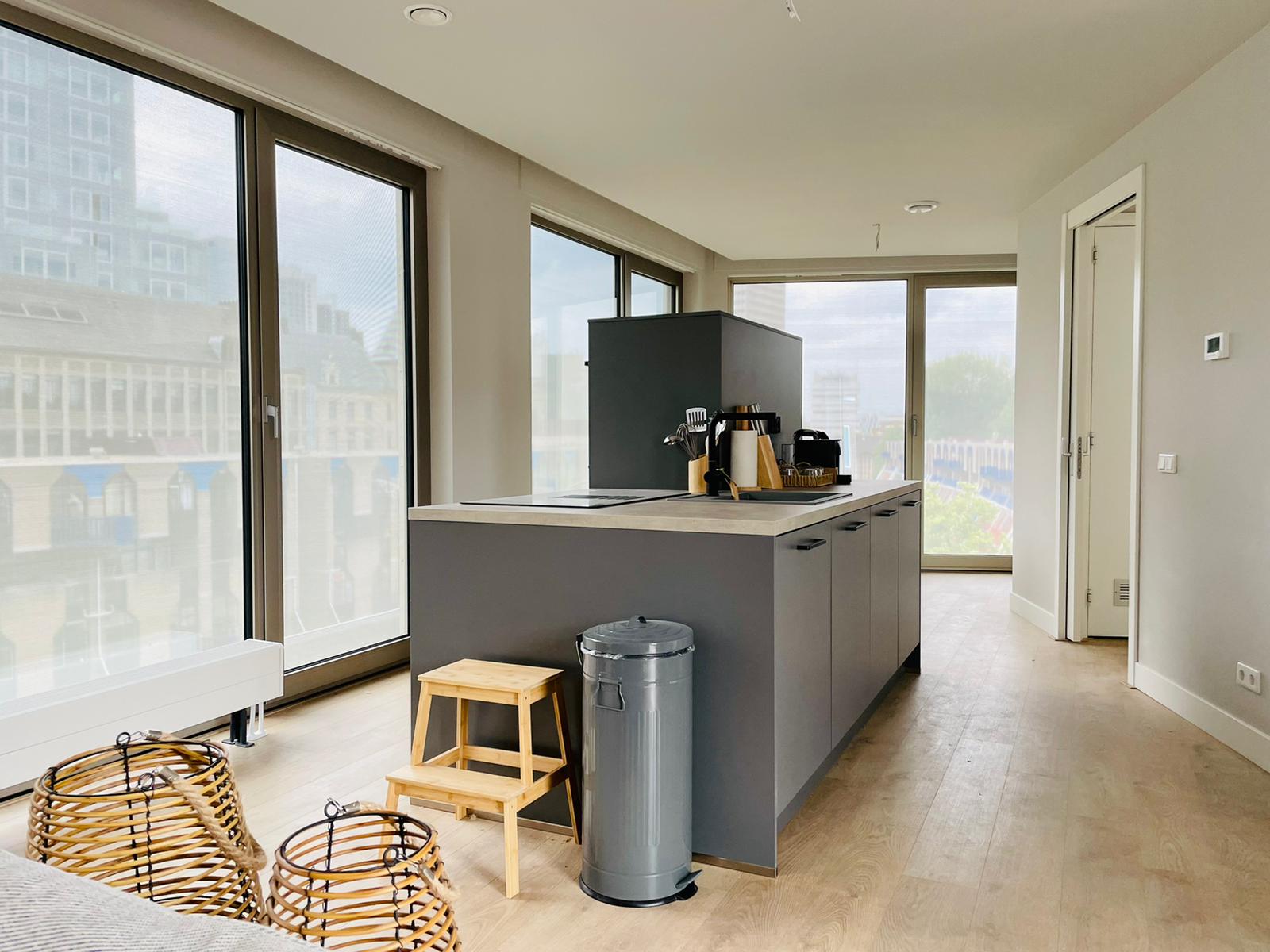 Modern and fully furnished apartment located in the North of Rotterdam. This modern apartment offers comfort furnishing. It comes to you fully equipped in a turn-key apartment style, with double glass windows & central heating. The apartment is located on the first floor within an apartment complex and is separated into 3 levels. It has an open entertainment kitchen, modern bright living-dining space, two bedrooms with double bed and lastly a large office/storage room with two desks ideal for working from home. On the top floor of the apartment is where the spacious outdoor terrace is located. This apartment also comes with a parking garage.